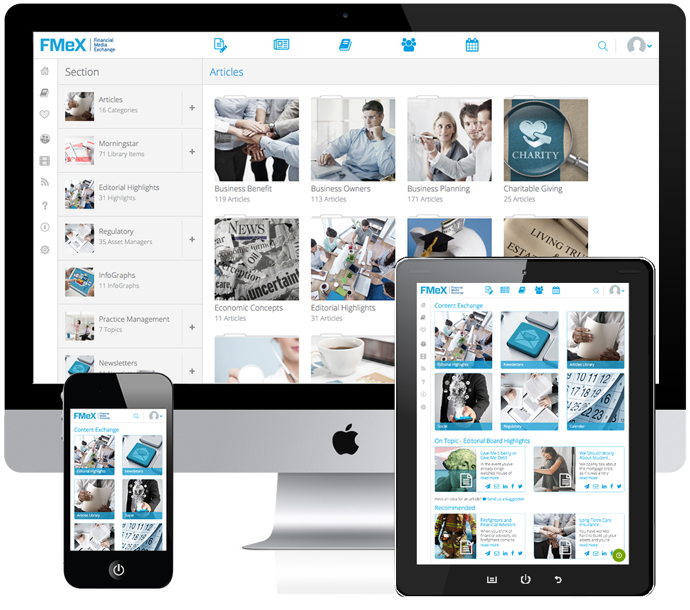 FMeX has developed a marketing content platform that provides technology aggregation, content curation and distribution suitable for the financial services industry. We provide access to all relevant content for investment professionals combined with content governance and compliance requirements of the industry with the need to achieve distribution channel connectivity.